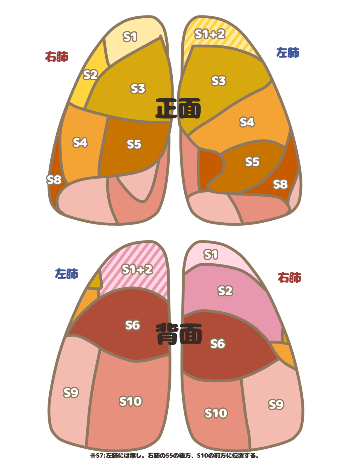 ※心臓があるため左肺にはS7が存在しない