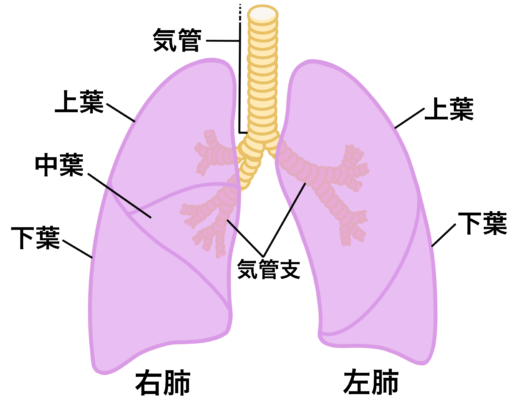 肺は左右に分かれ、それぞれがさらに複数の「肺葉」に区分されています。