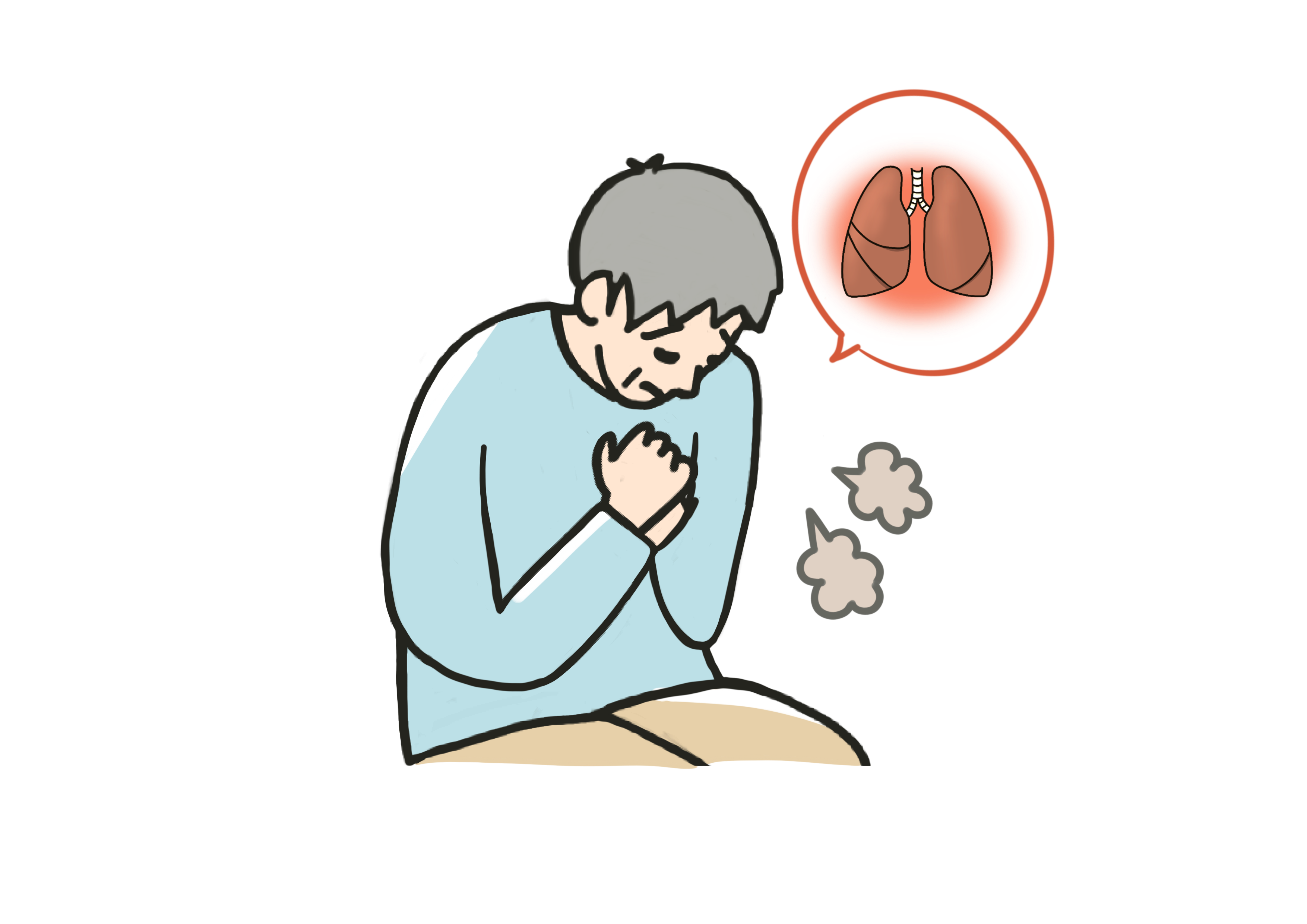 肺の空気の通り道が狭くなり、息切れ、せき、痰などの症状を引き起こします。COPDは徐々に悪化する病気であり、感染症などをきっかけに増悪を起こし、緊急治療や入院が必要となることもあります。