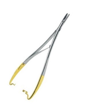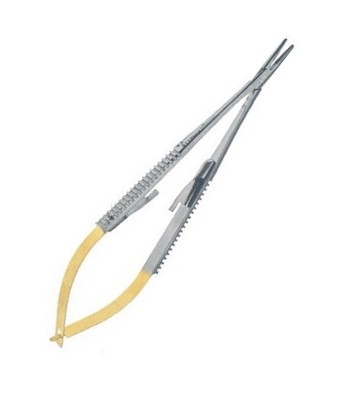 用途:眼科手術や血管・神経など細かい縫合が必要な場面で使われる持針器です。