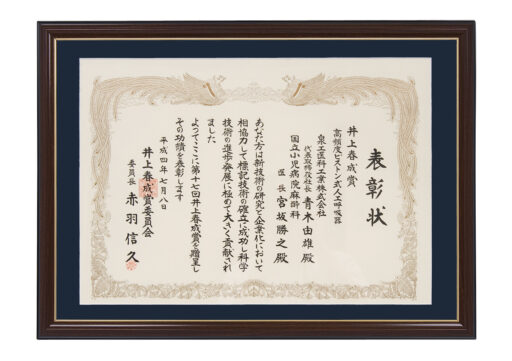二代目社長青木由雄、新技術事業団より井上春成賞受賞