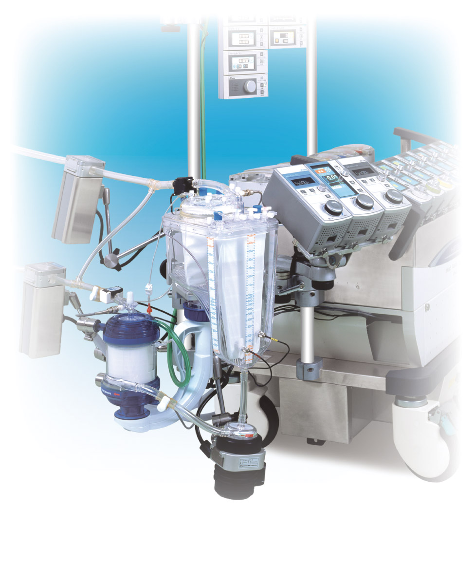 The pre-connected circuit of “MERA FHP Exelung”, a filter-built-in oxygenator offers improved safety and quick setup.