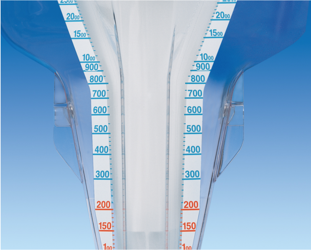 - ●液面の視認性を向上するために、リザーバ前面に傾斜を付けました。また、独特の絞り込み形状により、使用頻度の高い500~1000mLの目盛間隔を広くレイアウトしました。