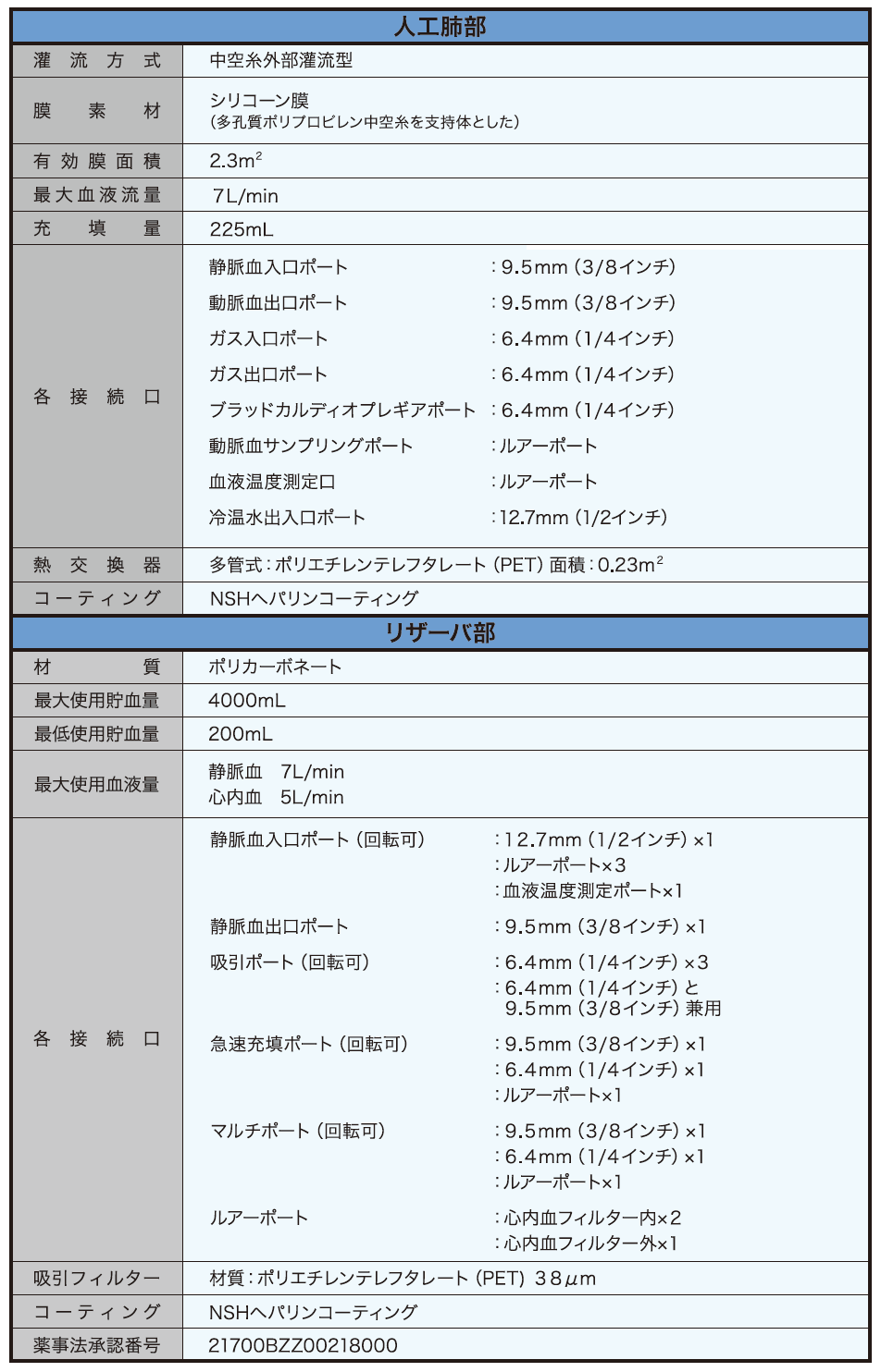 | 一般的名称 | ヘパリン使用体外式膜型人工肺 |
