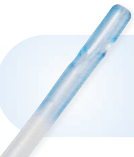 カテーテル先端が青く着色されており識別しやすく、着色部は透明部に比べて柔らかくなっています。