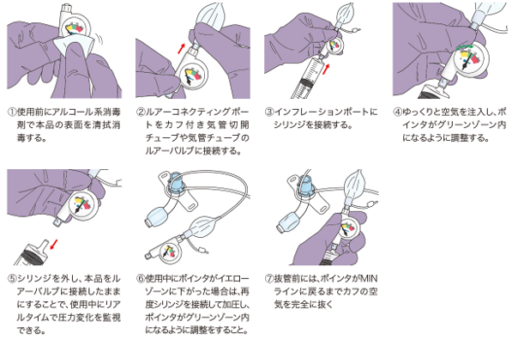 気管切開チューブや気管内チューブのカフ圧管理に使用します。