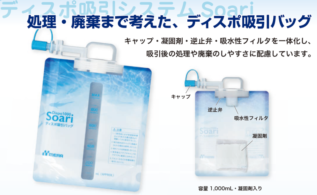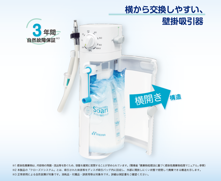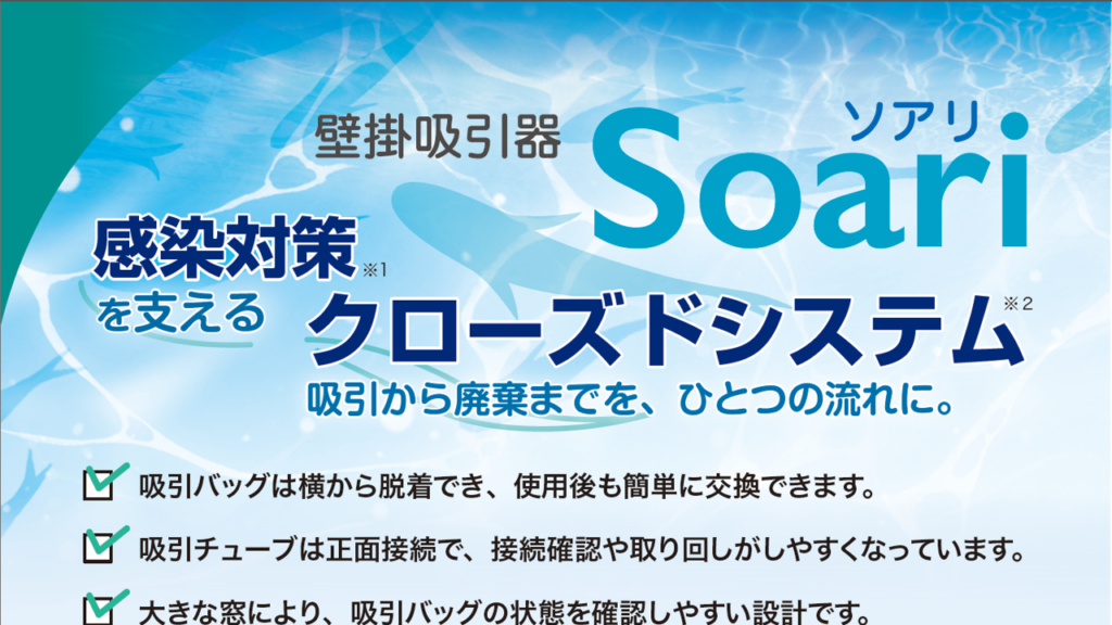 吸引チューブは正面接続で、接続確認や取り回しがしやすくなっています。
