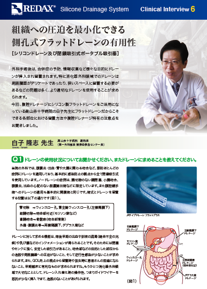 膵液瘻のリスクを伴うPD(膵腸十二指腸切除術)の術後管理にJPタイプドレーン フラットプラスを使用し、“抜去も交換もせずにただ待つだけで治癒する”ことが示されています。